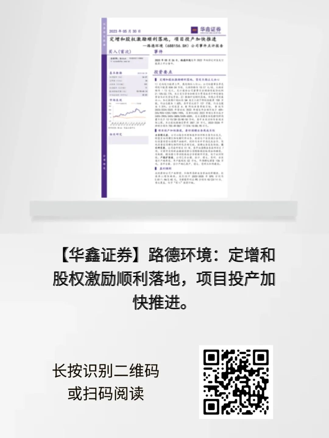 2023年5月26日,路德環(huán)境發(fā)布2022年向特定對象發(fā)行股票上市公告書。華鑫證券發(fā)布事件點評報告,首次覆蓋就給予了“買入”評級。