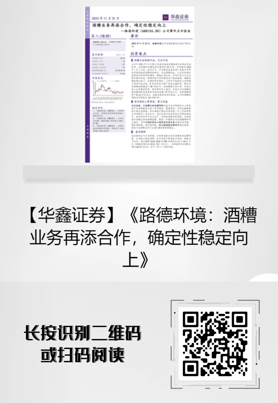 2023年11月20日,路德環(huán)境自愿披露收到酒鬼酒股份有限公司酒糟處置項目《成交通知書》的公告,華鑫證券發(fā)布點評報告,對該事件進行點評分析,并對公司未來發(fā)展前景給予肯定。